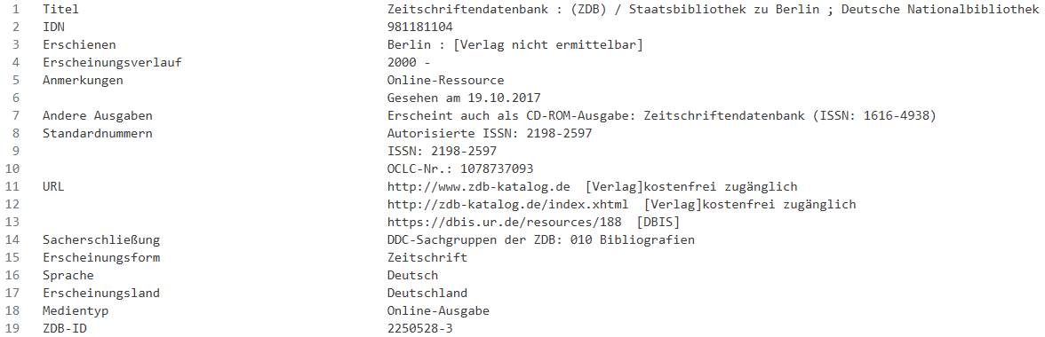 Im ZDB-Katalog können Sie unkompliziert prüfen, an welcher Bibliothek die von Ihnen benötigten Jahrgänge einer Zeitschrift oder Zeitung vorhanden sind. Öffnen Sie dazu in der Trefferliste durch Klick auf den gewünschten Titel den Detailnachweis und scrollen Sie zum Reiter "Bestand" unterhalb der bibliographischen Angaben.