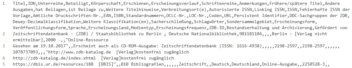Die Bestände der einzelnen Bibliotheken werden jeweils als eigener Zeitstrahl dargestellt, auf dem grau-farbene Abschnitte für vorhandene Jahrgänge im Bestand stehen. Weiße Abschnitte bedeuten, dass die Jahrgänge nicht im Bestand sind.
